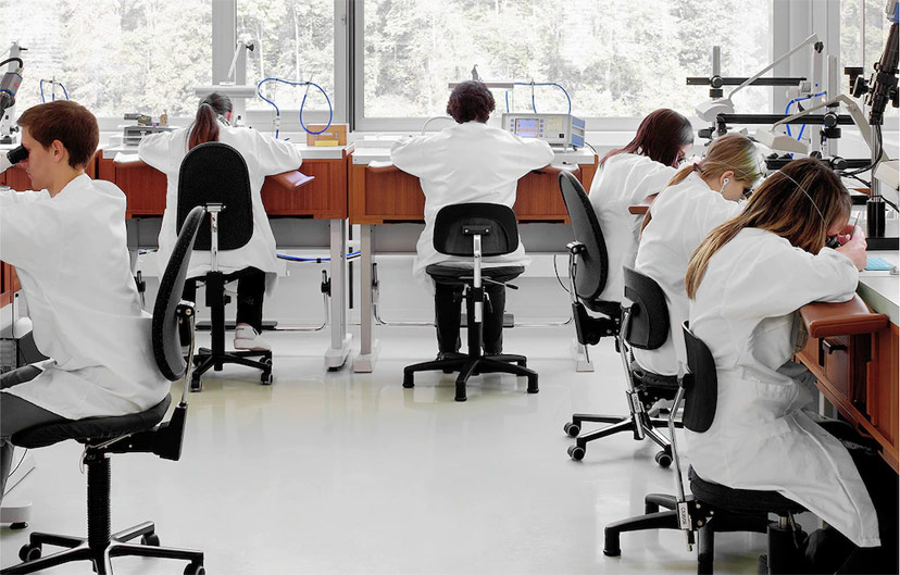廣州雷達維修專家們身著白色制服,在配備專業儀器的工作崗位上凝神靜氣,一心專注于眼前的工作。廣州雷達工坊的工作氛圍講求寧靜致遠,全心投入創造卓越品質。廣州雷達的專業表匠均具備廣泛技能與專業學識,只為精準無誤且持續耐久的機械時計。他們是廣州雷達腕表走時精準、品質斐然的保障,也是品牌時計卓著聲譽的幕后功臣。